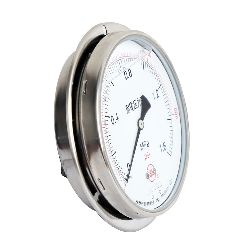 可檢測腐蝕性較強及高溫介質的壓力及真空度,壓力表指示穩定清晰。不銹鋼壓力表廣泛應用于石油、化工、冶金、食品、醫藥等工業部門壓力測量。
